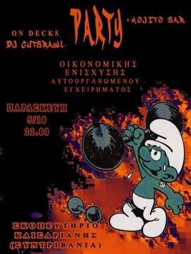 Παρασκευή 5/10 Παρτυ οικονομικής ενίσχυσης αυτοοργανομένου εγχειρήματος