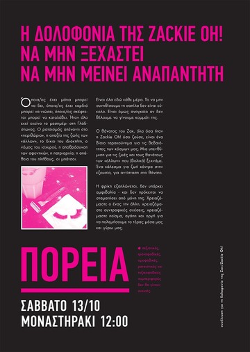 ΣΤΗΡΙΖΟΥΜΕ την ΠΟΡΕΙΑ που καλεί η Συνέλευση για τη δολοφονία της Ζακ/Ζackie Oh! - - ΣΑΒΒΑΤΟ 13/10/2018 στις 12:00 στο Μοναστηράκι