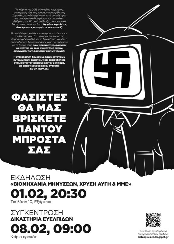 Η συνάδελφος καλείται να υπερασπιστεί ενώπιον του δικαστηρίου όχι μόνο τον εαυτό της ως δημοσιογράφο, αλλά και τη δυνατότητα να λέει ο οποιοσδήποτε, δημοσιογράφος ή μη, τα πράγματα με το όνομά τους: τους χρυσαυγίτες, φασίστες και νεοναζί και τους συνεργάτες αυτών, συνεργάτες των φασιστών και των νεοναζί.