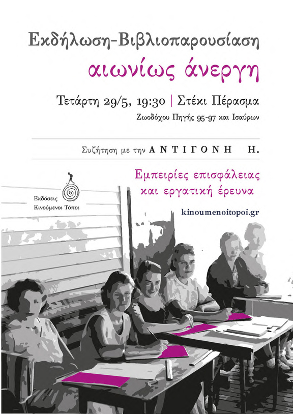 Συζήτηση με αφορμή την έκδοση του βιβλίου Αιωνίως Άνεργη της Αντιγόνης Η., εμπειρίες επισφάλειας και εργατική έρευνα την Τετάρτη 29/05 στις 19:30 στο στέκι Πέρασμα (Ζ. Πηγής 9