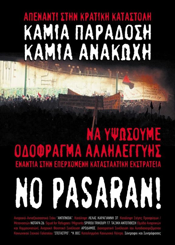 Αναρχικό - Αντιεξουσιαστικό Στέκι «ΑΝΤΙΠΝΟΙΑ», Κατάληψη ΛΕΛΑΣ ΚΑΡΑΓΙΑΝΝΗ 37, Κατάληψη Στέγης Προσφύγων /Μεταναστών ΝΟΤΑΡΑ 26, Squat for Refugees/Migrants SPIROU TRIKOUPI 17, ΤΑΞΙΚΗ ΑΝΤΕΠΙΘΕΣΗ (Ομάδα Αναρχικών και Κομμουνιστών), Αναρχική Φοιτητική Συνέλευση ΑΡΟΔΑΜΟΣ, Διαχειριστική Συνέλευση του Αυτοδιαχειριζόμενου Κοινωνικού Στεκιού Γαλατσίου «ΣΤΕΓΑΣΤΡΟ», *Κ ΒΟΞ Κατειλημμένο Κοινωνικό Κέντρο, Σύντροφοι και Συντρόφισσες