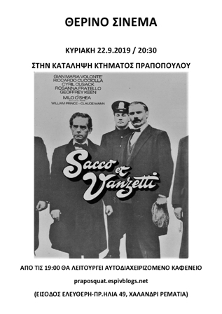 Πολιτικό Καφενείο και Προβολή "Sacco and Vanzetti"