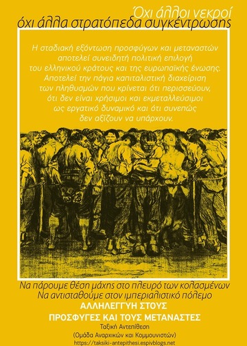 Όσο μένουμε παρατηρητές τόσο θα γιγαντώνονται τα Άουσβιτς της εποχής μας. Τα κέντρα κράτησης είναι η συνέχιση των ιμπεριαλιστικών πολέμων μέσα στο έδαφος της Ευρώπης.