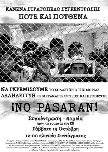 Όχι άλλοι νεκροί, όχι άλλα στρατόπεδα συγκέντρωσης! Συγκέντρωση - πορεία προς τα γραφεία της ΕΕ. Σάββατο 19/10 12:00, Σύνταγμα