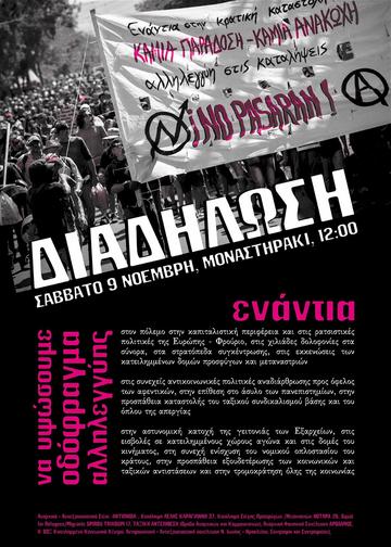 - Στην διαδήλωση ενάντια στην κρατική και καπιταλιστική επίθεση το Σάββατο 9/11 στις 12:00 στο Μοναστηράκι
