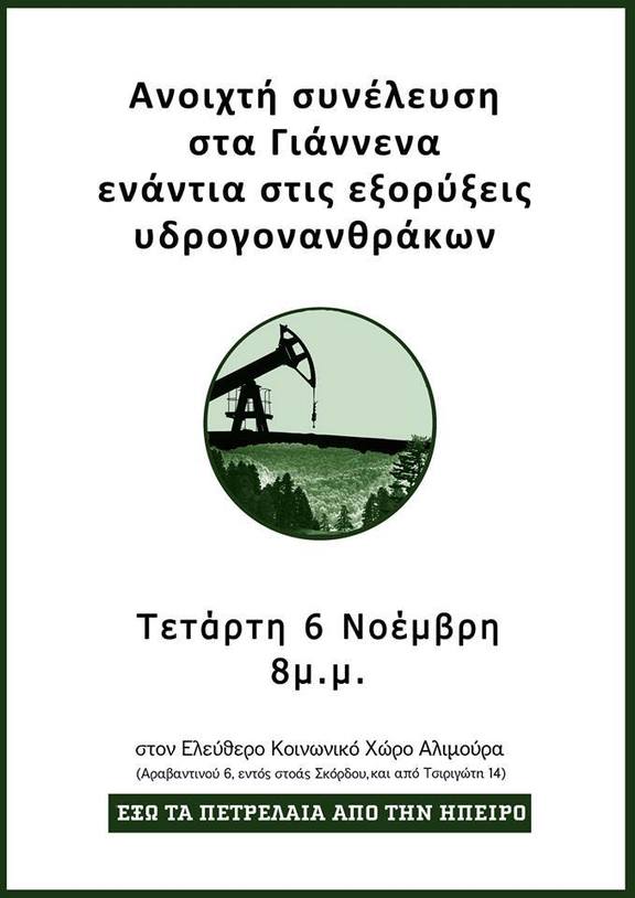 Ανοιχτή συνέλευση στα Γιάννενα ενάντια στις εξορύξεις υδρογονανθράκων!