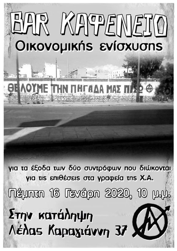 Καφενείο αλληλεγγύης στους δύο διωκόμενους για τις επιθέσεις στα γραφεία της Χ.Α