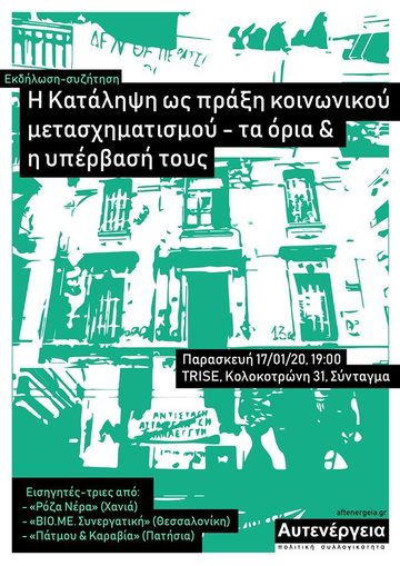 Εκδήλωση-συζήτηση: "Η Κατάληψη ως πράξη κοινωνικού μετασχηματισμού - τα όρια και η υπέρβασή τους"