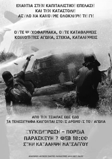 Κάλεσμα της συνέλευσης αναρχικών για την αλληλεγγύη εντός και εκτός των τειχών ενόψει της πορείας της Παρασκευής 7 Φλέβαρη στον Βόλο.