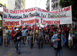 Ο Συντονισμός Πρωτοβάθμιων Σωματείων χαιρετίζει τον ηρωικό αγώνα του εργαζόμενου λαού και της νεολαίας της Αθήνας απέναντι στα κρανοφόρα και μηχανοκίνητα στρατεύματα ωμής βίας που εξαπόλυσε η χούντα της κυβέρνησης του ΠΑΣΟΚ, της ΕΕ και του ΔΝΤ. Ο λαός κάνει πράξη το σύνθημα που φώναξε η λαϊκή συνέλευση της πλατείας Συντάγματος: