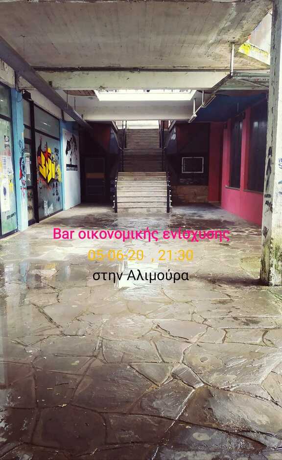 τι; : καφενείο-bar θεματική : οικονομική ενίσχυση από : Ελεύθερος Κοινωνικός Χώρος ''Αλιμούρα''