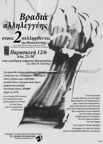 Βραδιά αλληλεγγύης στους 2 συλληφθέντες της Θεσσαλονίκης