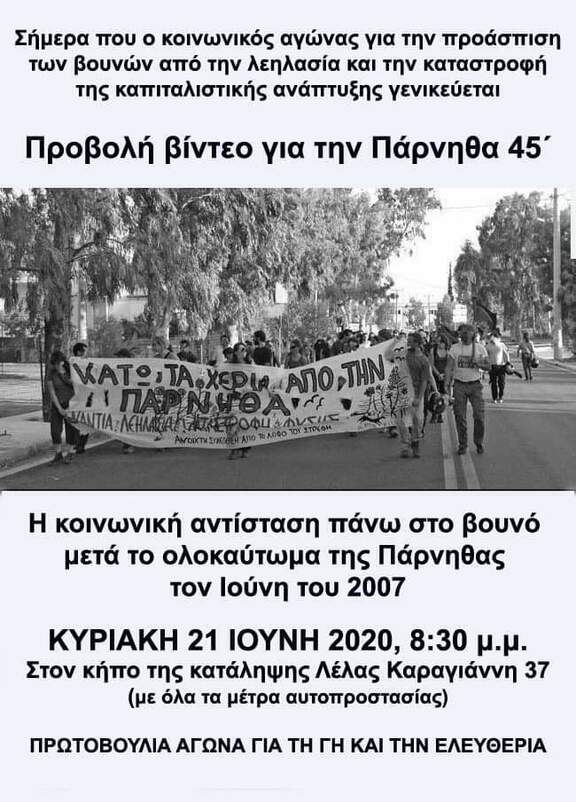 Η κοινωνική αντίσταση πάνω στο βουνό μετά το ολοκαύτωμα της Πάρνηθας τον Ιούνη του 2007