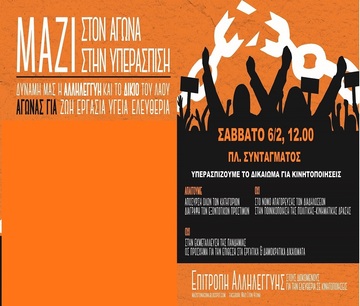 ΣΥΓΚΕΝΤΡΩΣΗ ΓΙΑ ΤΟ ΔΙΚΑΙΩΜΑ ΣΤΙΣ ΚΙΝΗΤΟΠΟΙΗΣΕΙΣ το ΣΑΒΒΑΤΟ 6 ΦΛΕΒΑΡΗ στις 12μ στο ΣΥΝΤΑΓΜΑ