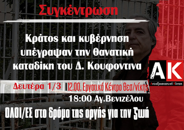Συγκέντρωση αλληλεγγύης στον επαναστάτη απεργό πείνας και δίψας Δ. Κουφοντίνα