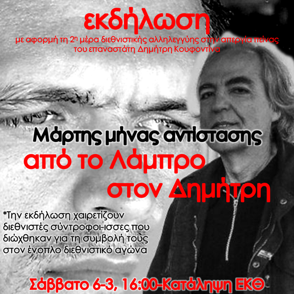 με αφορμή τη 2η μέρα διεθνιστικής αλληλεγγύης στην απεργία πείνας του επαναστάτη Δημήτρη Κουφοντίνα