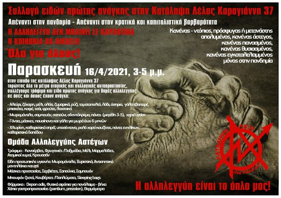Συλλογή ειδών πρώτης ανάγκης στην Κατάληψη Λέλας Καραγιάννη 37