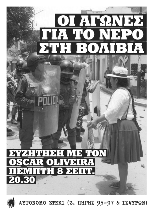 συζήτηση με θέμα: «Οι αγώνες για το νερό στην Βολιβία» με τον Oscar Oliveira