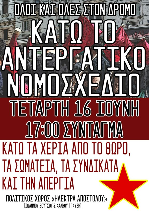Απεργία 16 Ιουνίου - Κάτω τα χέρια από το 8ωρο και τα συνδικάτα