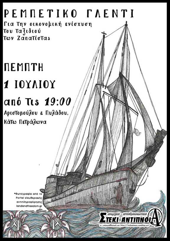 Ρεμπέτικο γλέντι στο αναρχικό - αντιεξουσιαστικό στέκι Αντίπνοια την Πέμπτη 1 Ιουλίου στις 19:00 για την οικονομική ενίσχυση του ταξιδιού των ζαπατιστας στην Ευρώπη