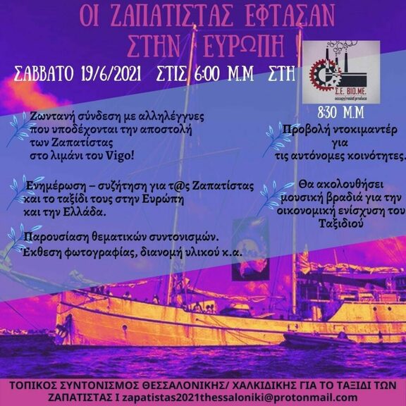 - ζωντανή σύνδεση με αλληλέγγυες που έχουν μεταβεί στο Vigo για την υποδοχή των ζαπατίστας,