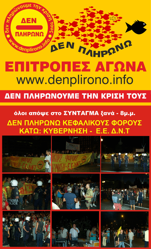Συγκροτούμε ΕΠΙΤΡΟΠΕΣ ΑΓΩΝΑ ΔΕΝ ΠΛΗΡΩΝΩ σε κάθε γειτονιά. Η ατομική αντίσταση γίνεται συλλογική και οι συλλογικότητες μπορούν να στηρίζουν τον κάθε αγωνιστή.