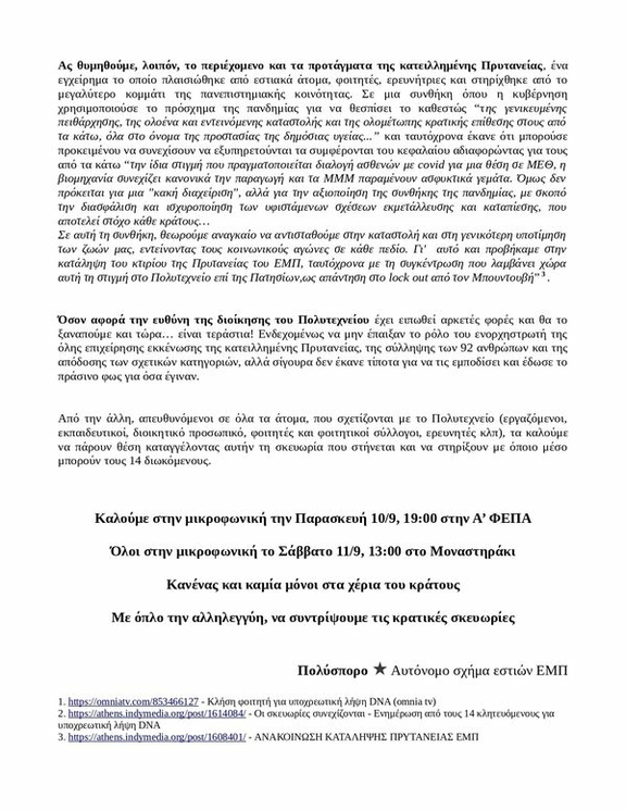 3. https://athens.indymedia.org/post/1608401/ - ΑΝΑΚΟΙΝΩΣΗ ΚΑΤΑΛΗΨΗΣ ΠΡΥΤΑΝΕΙΑΣ ΕΜΠ