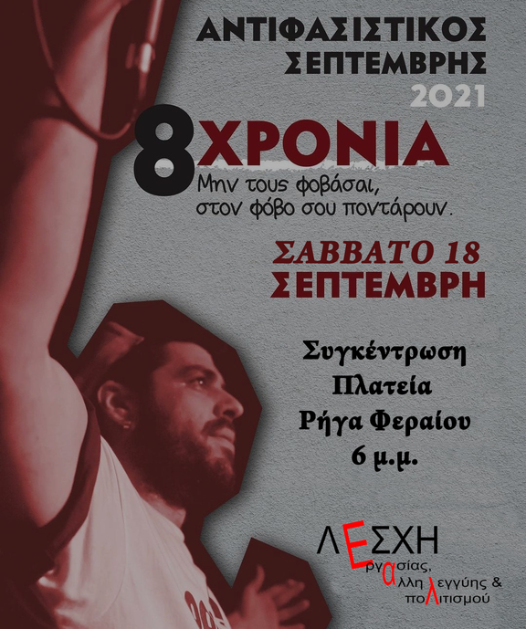 Στις 18 Σεπτεμβρίου συμπληρώνονται 8 χρόνια από την δολοφονία του Παύλου Φύσσα από τον Γ. Ρουπακιά, μέλος των ταγμάτων εφόδου της Χ.Α. Η δολοφονία αυτή αποτέλεσε το αποκορύφωμα μιας σειράς επιθέσεων σε μετανάστες/στριες και χώρους αγώνα από φασιστικές/παρακρατικές ομάδες, αρκετές από τις οποίες δεν έγιναν καν γνωστές στην ευρύτερη Ελληνική κοινωνία. Τέτοιες παρακρατικές ομάδες διαχρονικά λειτουργούν ως εφεδρεία ενός συστήματος που ωφελεί λίγους, με σκοπό την τρομοκράτηση της κοινωνίας και την καταστολή των διάφορων κοινωνικών και ταξικών αγώνων.