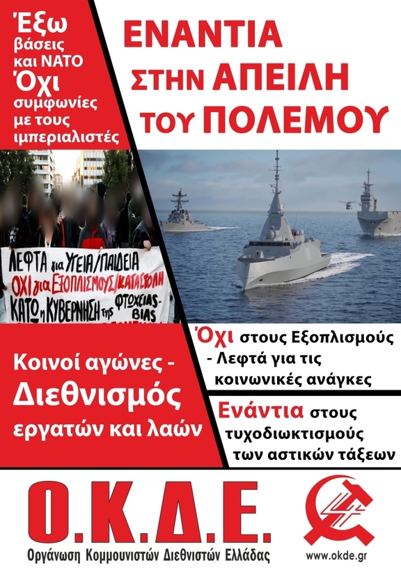 - Ενάντια στον πατριδοκάπηλο εθνικισμό & μιλιταρισμό της ελληνικής αστικής τάξης. Κοινός αντιπολεμικός αγώνας - Διεθνιστική πάλη των λαών ενάντια σε κυβερνήσεις, αστικές τάξεις, ιμπεριαλιστές