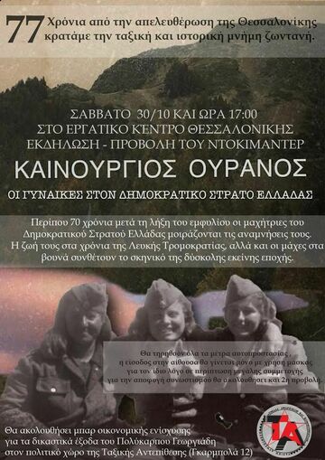 Εκδήλωση-προβολή του ντοκιμαντέρ "Καινουργιος ουρανος"