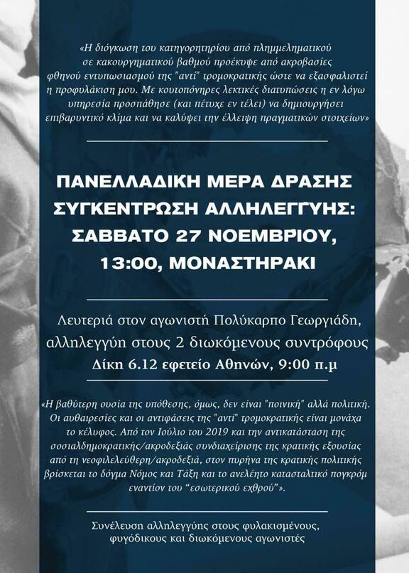 Συγκέντρωση Αλληλεγγύης: Σάββατο 27/11 13:00, Μοναστηράκι