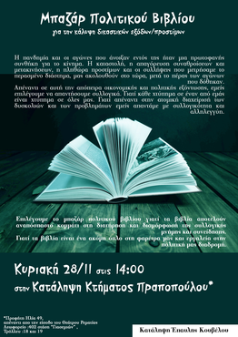 Επιλέγουμε το μπαζαρ πολιτικού βιβλίου γιατί τα βιβλία αποτελούν αναπόσπαστο κομμάτι στη διατήρηση και διαμόρφωσή της συλλογικής μνήμης και συνείδησης. Γιατί τα βιβλία είναι ένα ακόμη όπλο στη φαρέτρα μας και εργαλεία στην πολιτική μας διαδρομή.