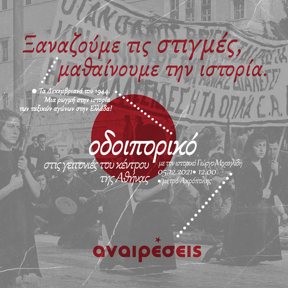 Το project «Αναιρέσεις» στην Αθήνα, στα πλαίσια της επετείου από τα ιστορικά «Δεκεμβριανά» του 1944, διοργανώνει ένα ακόμα ιστορικό οδοιπορικό!