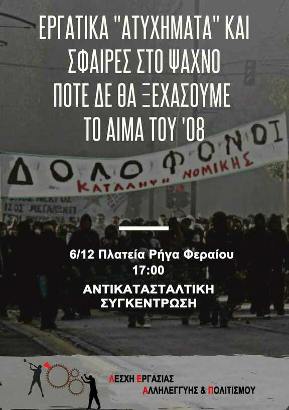 Αντικατασταλτική συγκέντρωση, Δευτέρα 6/12 στις 17:00 Πλατεία Ρήγα Φεραίου