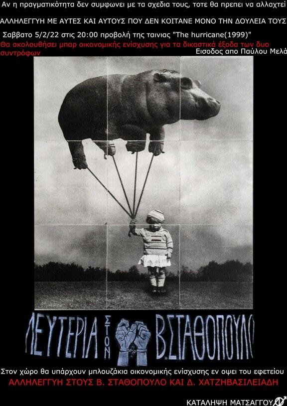 5/2/22 Προβολή και μπάρ εν οψει του εφετείου των συντρόφων Δ. Χατζηβασιλειάδη και Β. Σταθόπουλο.