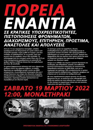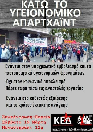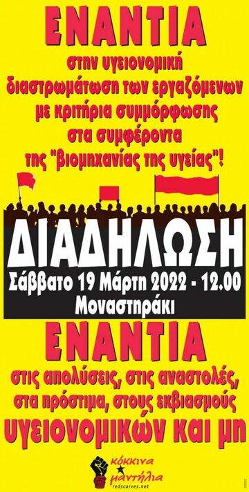 Διαδήλωση - Ενάντια στις απολύσεις, στις αναστολές, στα πρόστιμα, στους εκβιασμούς υγειονομικών και μη