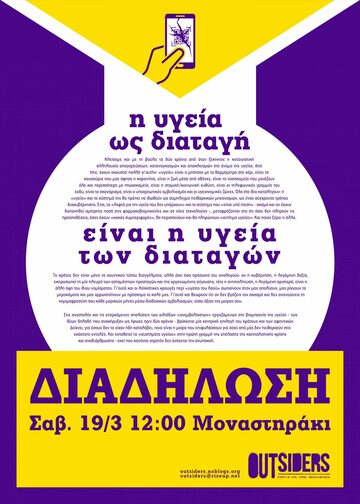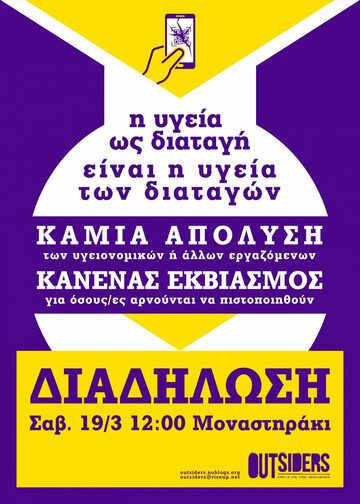 ΔΙΑΔΗΛΩΣΗ: Η ΥΓΕΙΑ ΩΣ ΔΙΑΤΑΓΗ ΕΙΝΑΙ Η ΥΓΕΙΑ ΤΩΝ ΔΙΑΤΑΓΩΝ (Σάββατο 19/03 - 12:00 - Μοναστηράκι)