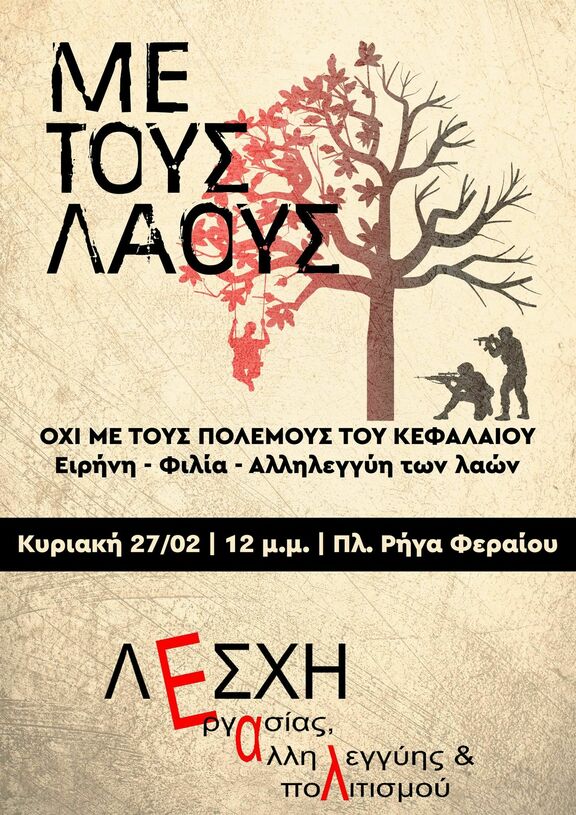 ΟΛΟΙ/ΕΣ ΣΤΗΝ ΑΝΤΙΠΟΛΕΜΙΚΗ ΣΥΓΚΕΝΤΡΩΣΗ - ΚΥΡΙΑΚΗ 27/2 ΠΛΑΤΕΙΑ ΡΗΓΑ ΦΕΡΑΙΟΥ 12:00 ΜΜ