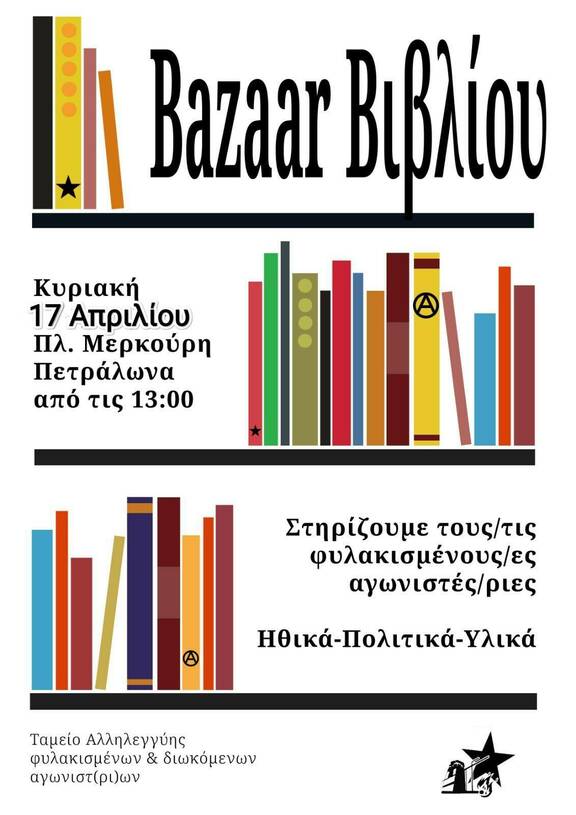 Μπαζαρ βιβλίων οικονομικής ενίσχυσης του Ταμείου Αλληλεγγύης Φυλακισμένων και Διωκόμενων αγωνιστών-στριών