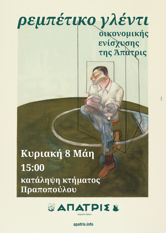 Ρεμπέτικο γλέντι οικονομικής ενίσχυσης της εφημερίδας δρόμου Άπατρις στις 8 μαΐου στην κατάληψη κτήματος Πραποπούλου στις 15:00. Στο χώρο θα υπάρχει και το φύλλο 50.