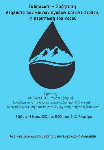 Εκδήλωση - Συζήτηση με θέμα "Λεηλασία των κοινών αγαθών και αντιστάσεις: η περίπτωση του νερού".
