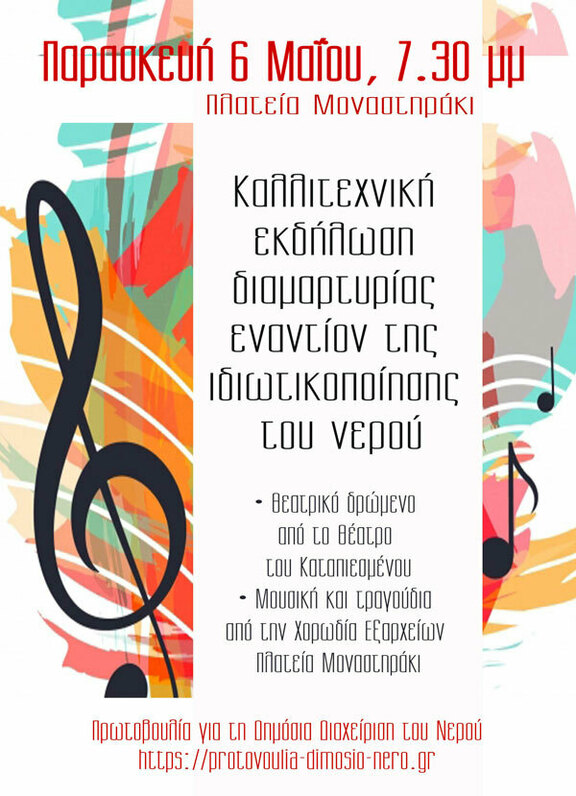 οργανώνουμε εκδήλωση διαμαρτυρίας και αγώνα για την αποτροπή της ιδιωτικοποίησης του νερού.