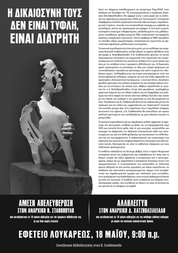 Καλούμε σε συγκέντρωση στο εφετείο (Λουκάρεως), την Τετάρτη 18 Μάη στις 9.00