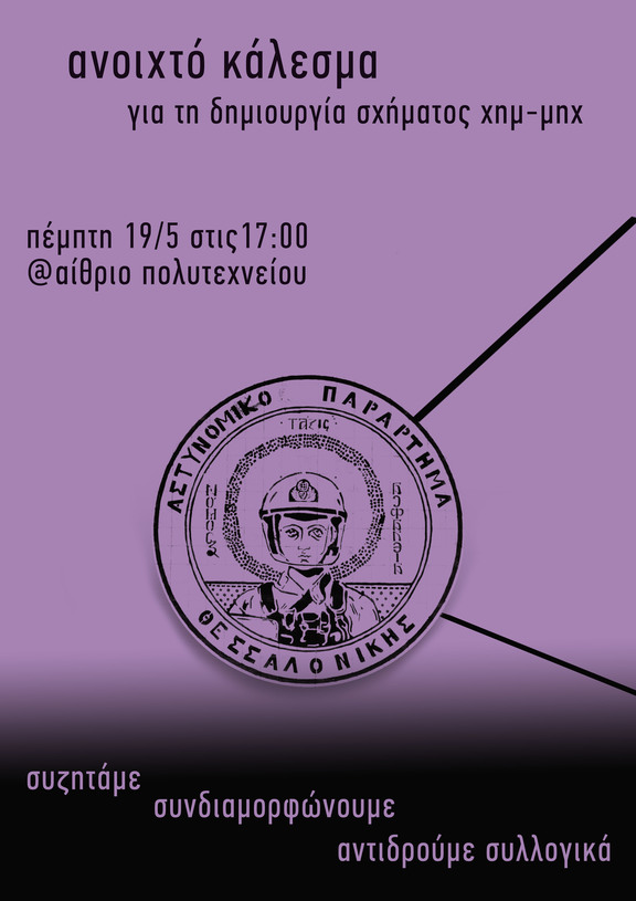 Καλούμε Πέμπτη 19/05/22 στις 17:00 στο αίθριο πολυτεχνείου για να συζητήσουμε τη σύσταση σχήματος στη σχολή μας με αντιεραρχικές διαδικασίες.