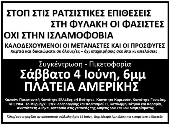 Έξω οι φασίστες από τις γειτονιές. STOP στις ρατσιστικές επιθέσεις. Όχι στην ισλαμοφοβία.
