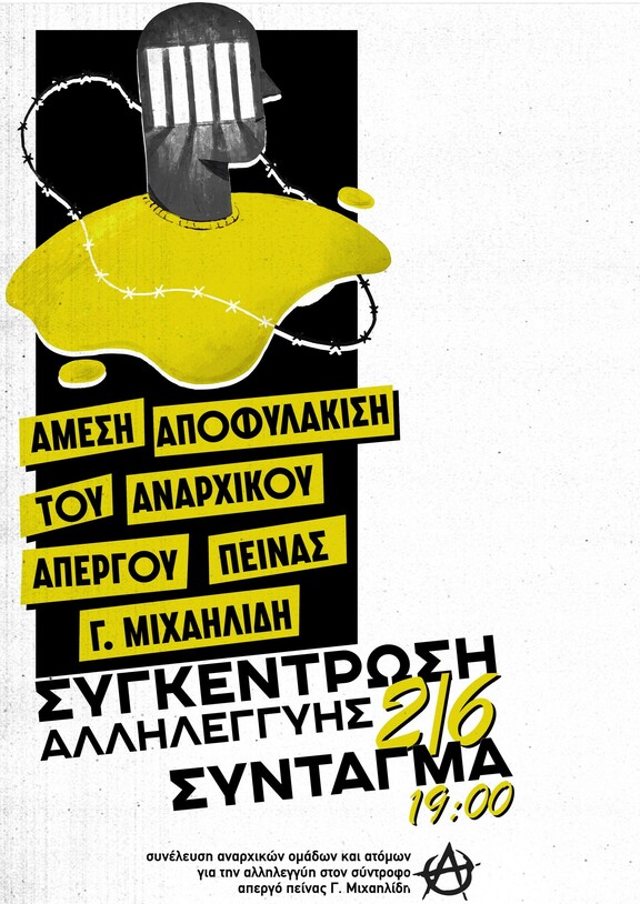 Κάλεσμα στην συγκέντρωση της Πανελλαδικής Ημέρας Δράσης για τον αναρχικό απεργό πείνας Γ.Μιχαηλίδη