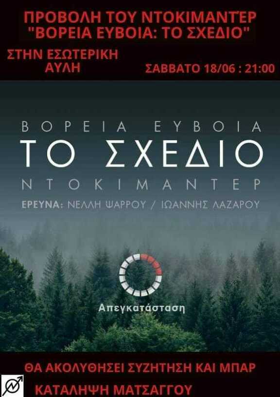 Προβολή του ντοκιμαντέρ "Βόρεια Εύβοια: Το σχέδιο", συζήτηση & μπαρ