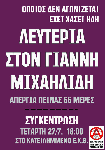 Συγκέντρωση αλληλεγγύης στον αναρχικό απεργό πείνας Γ.Μιχαηλίδη