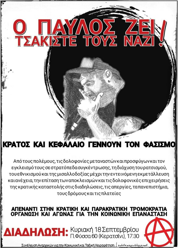 Από τη συμμετοχή της Συνέλευσης Αναρχικών για την Κοινωνική και Ταξική Χειραφέτηση και το μπλοκ που συγκρότησε την Κυριακή 18/9/2022 στην αντιφασιστική- αντικρατική- αντικατασταλτική διαδήλωση στο Κερατσίνι για τα 9 χρόνια από τη δολοφονία του αντιφασίστα Παύλου Φύσσα, στην οποία συμμετείχαν χιλιάδες κόσμου αψηφώντας την κρατική καταστολή και τρομοκρατία, που τις προηγούμενες μέρες εκδηλώθηκαν με ακόμα πιο βίαιους όρους· στην Αθήνα στη φοιτητική διαδήλωση (17/9) με συνεχείς επιθέσεις και ξυλοδαρμούς της αστυνομίας στους συγκεντρωμένους/ες φοιτητές/τριες και στη Θεσσαλονίκη το βράδυ της 16ης Σεπτέμβρη με τη δολοφονική επίθεση των δυνάμεων καταστολής στο 3ο Ελευθεριακό Φεστιβάλ Κατειλημμένων Χώρων και Συλλογικοτήτων κατά τη διάρκεια συναυλίας στο ΑΠΘ, πνίγοντας στα χημικά 7000 ανθρώπους.