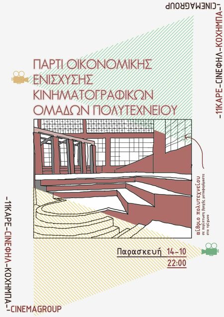 Οι κινηματογραφικές ομάδες CineΦ.Ηλ., ΚΟΧήΜΠΑ, 11καρέ και CinemaGroup ενώνουν τις δυνάμεις τους, αυτή τη φορά σαν party planners, και σας προσκαλούν σε μια βραδιά με μουσικάρες και ποτάρες στο Αίθριο του Πολυτεχνείου.